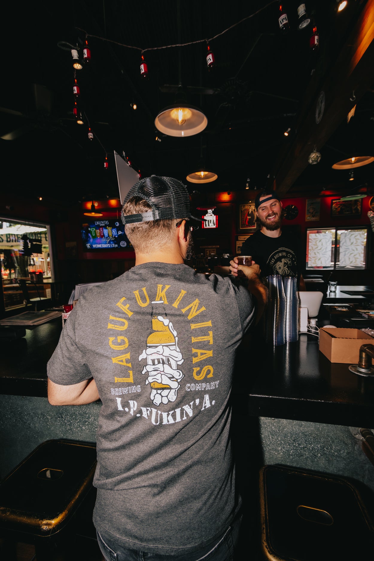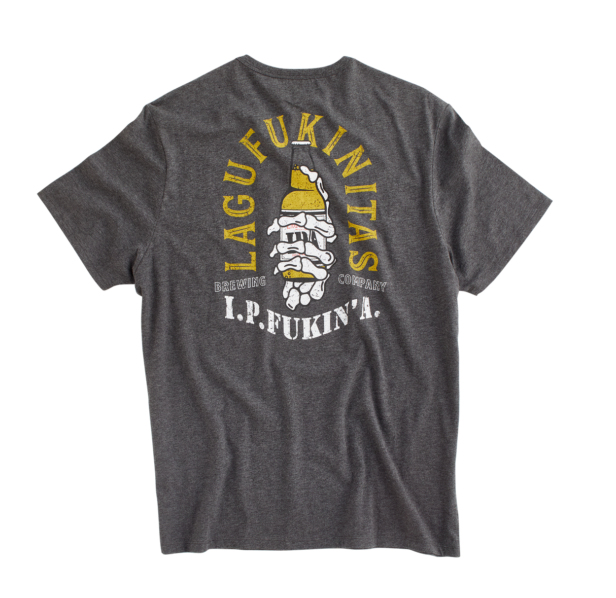 Looking for a t-shirt that's the realfukindeal? Look no further than the IPFukinA T-Shirt from Lagufukinitas! Crafted with premium quality fabric, this Lagunitas charcoal t-shirt is perfect for any craft beer lover looking to add a little style to their wardrobe. And with the distinctive skull hand motif, you'll be making a statement that's as bold as the Lagunitas IPA itself. So go ahead, grab the IPFukinA T-Shirt and show off your love for Lagunitas in style.