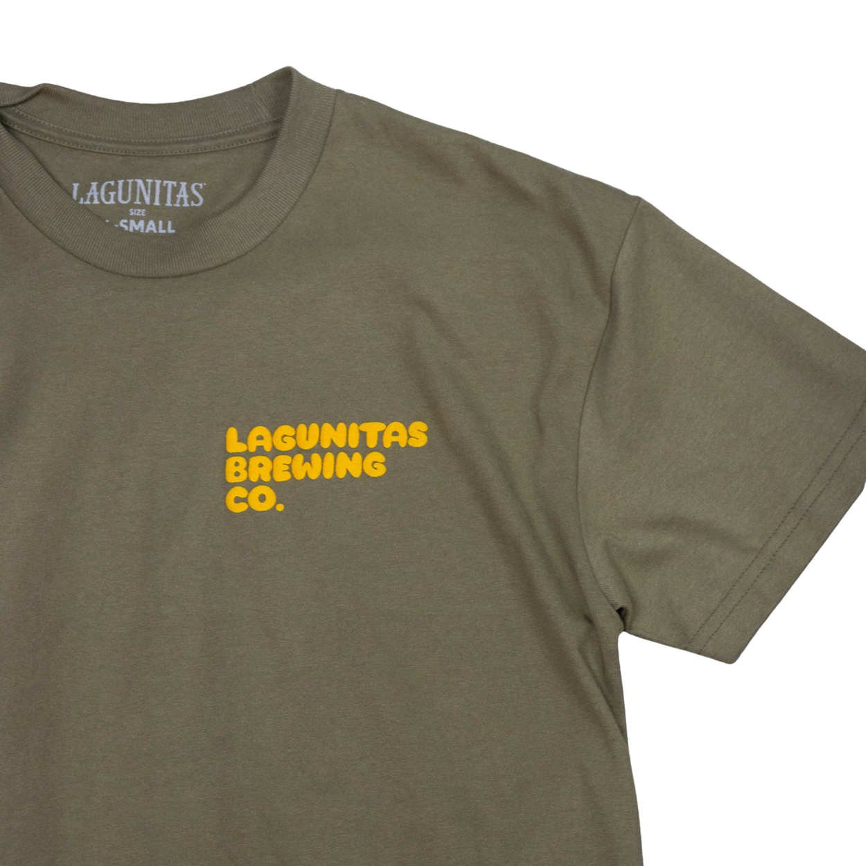 This heavyweight olive tee doesn’t just wear the Lagunitas logo, it makes it POP. With a puff paint finish that jumps off the fabric, it’s bold, textured, and built for beer lovers who like their style with a little extra kick.